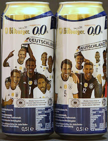 Bitburger Premium Pils finns också i en "Fussball Edition" om fyra burkar. Den gemensamma fronten av burkarna :